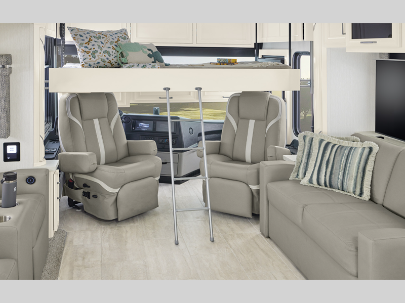 - Bunk Bed Drop-Down Over Driver and Passenger Seats to Windshield with Bunk Ladder