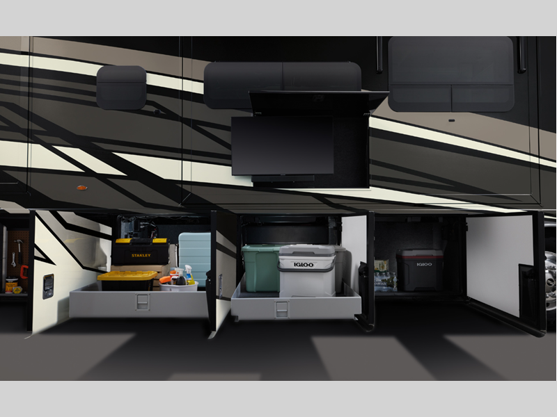 - TV Jack and 110-Volt Recept in Door Side Exterior Storage Compartment