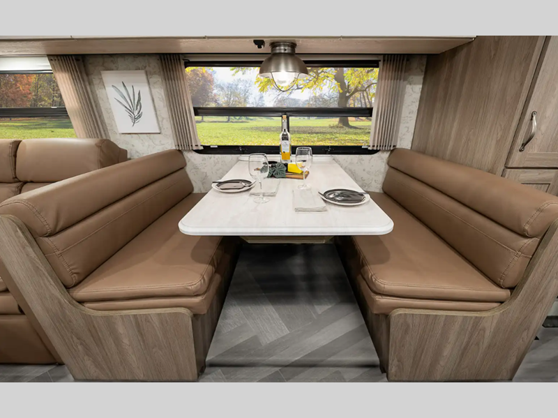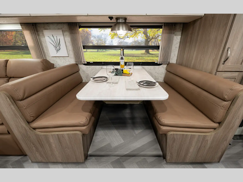 Each model includes an upgraded galley with Corian countertops and ceramic tile backsplash, a king-size bed with storage below, plus sleek dual-pane frameless tinted windows. You will be in control of your coach's functions with the Winnebago Control command center with a 7" touchscreen and available app, and the Winegard 4G LTE Wi-Fi router included means you can stay connected while away from home. The conveniences continue outdoors with a KeyOne lock system, premium full-body paint and protective front mask, plus lighted storage compartments and a power awning with LED lighting!